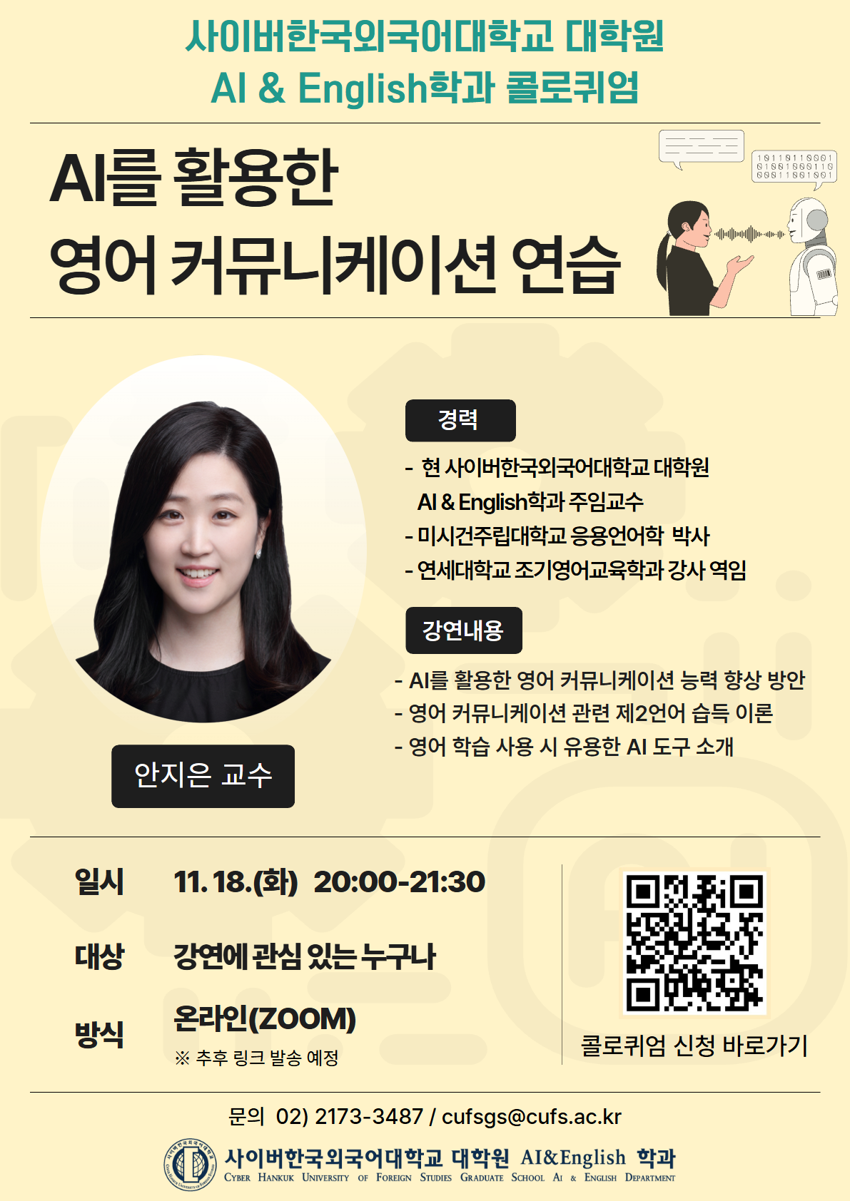 11월 18일(화) 20시 - AI & English학과 콜로퀴엄 안내(온라인)