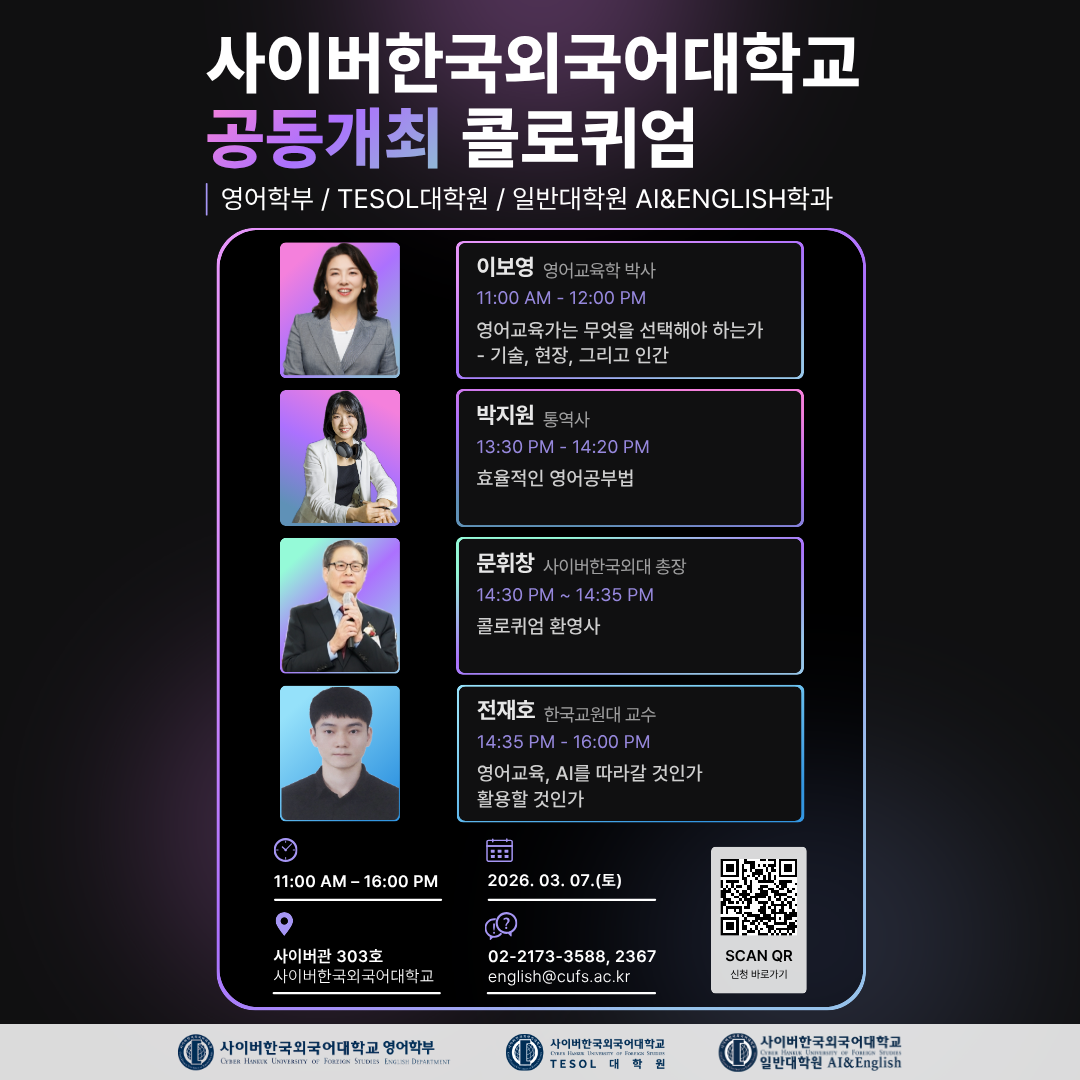 사이버한국외국어대학교 TESOL대학원 / AI & English학과 / 영어학부 콜로퀴엄 안내